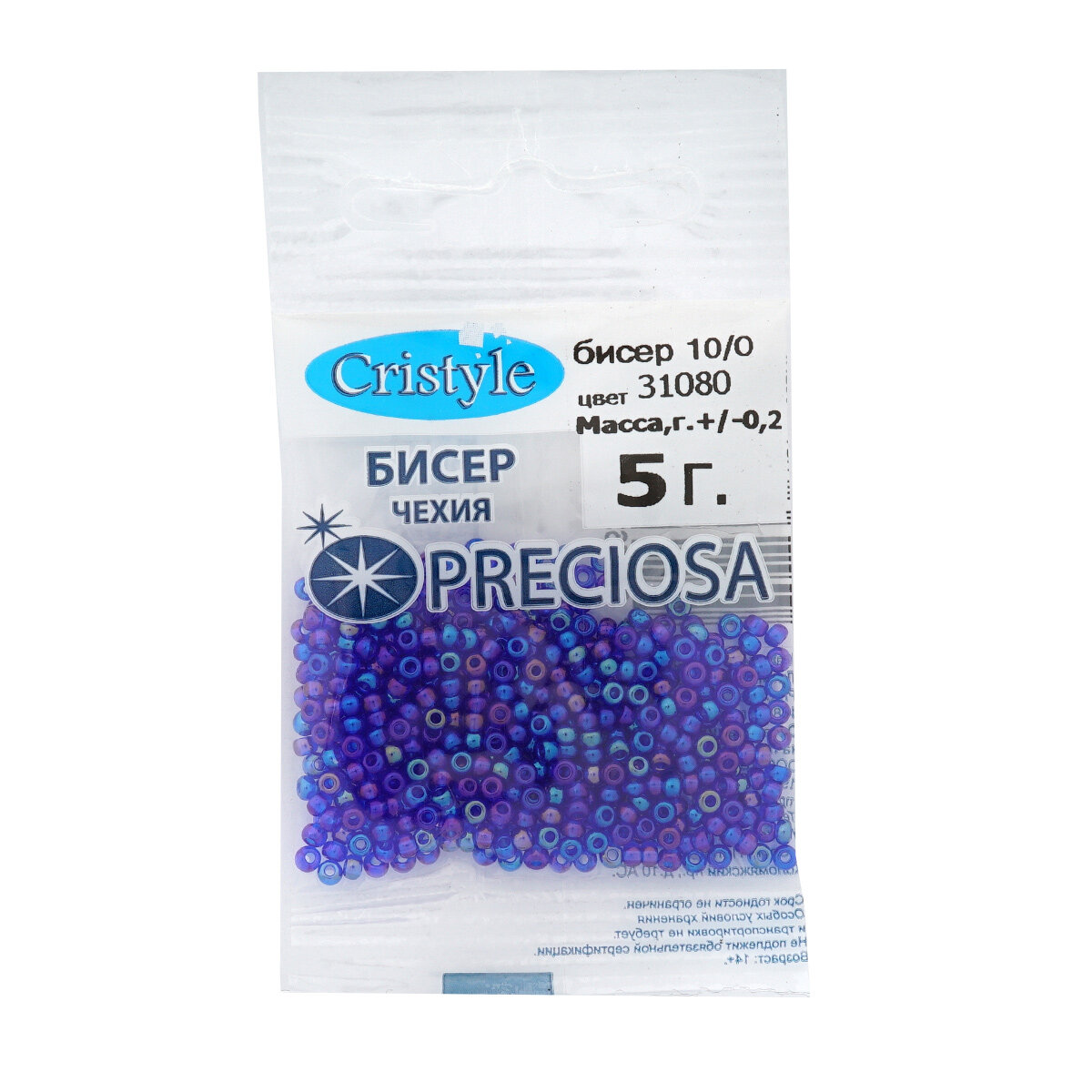 Купить Бисер чешский Preciosa 10/0 (2,3 мм), цвет № 31080, 5г*10 упак