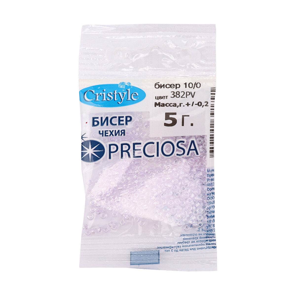 Бисер чешский Preciosa 10/0 (2,3 мм), цвет № 30100, 5г*10 упак