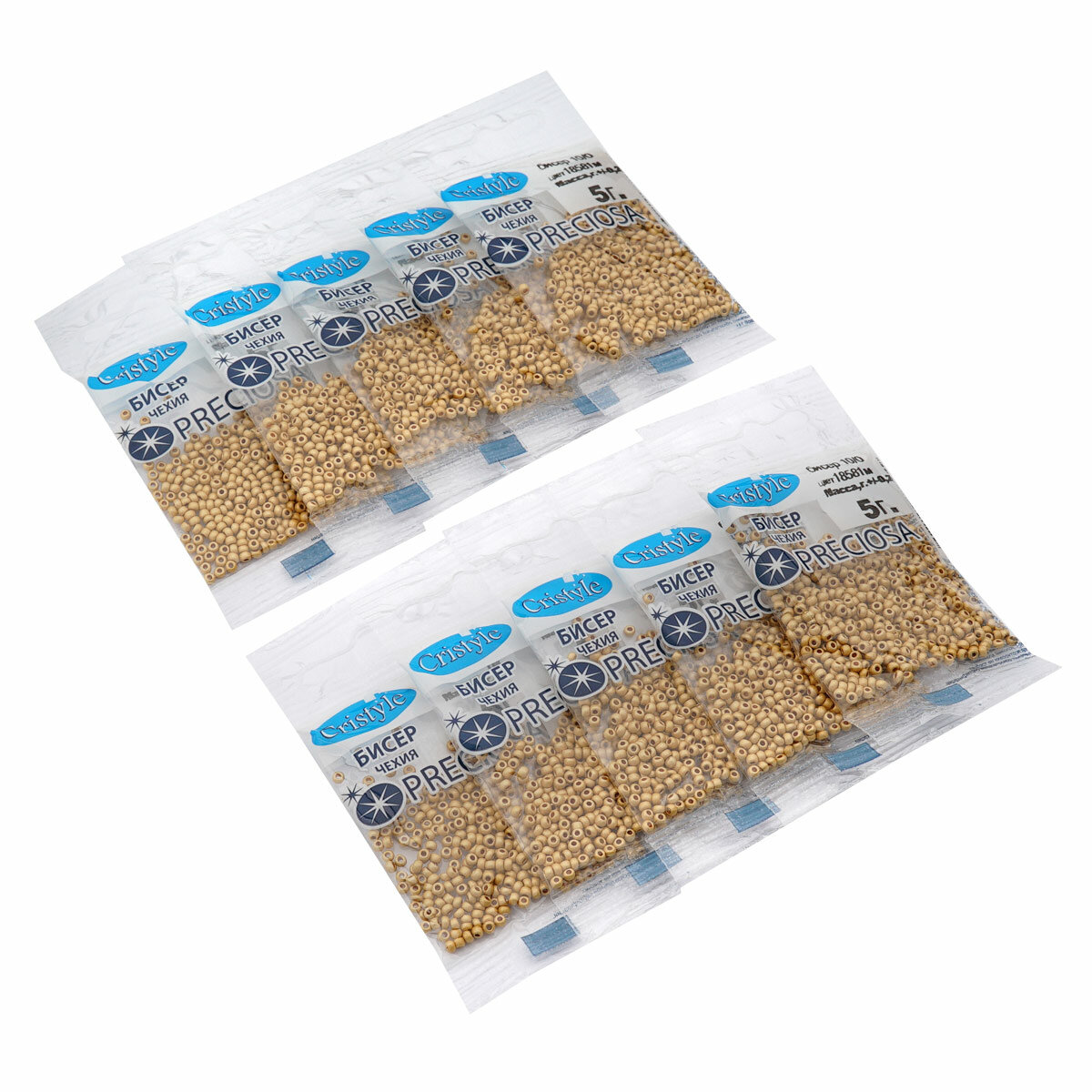 Бисер чешский Preciosa 10/0 (48055), стекло, круглое отверстие, 5 г*10 упак