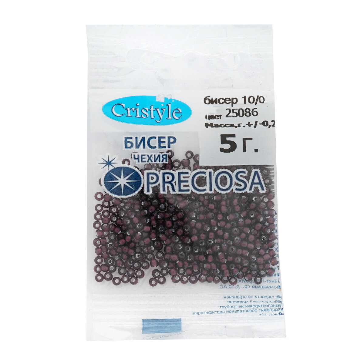 Бисер чешский Preciosa 10/0 (2,3 мм), цвет № 86010, 5г*10 упак