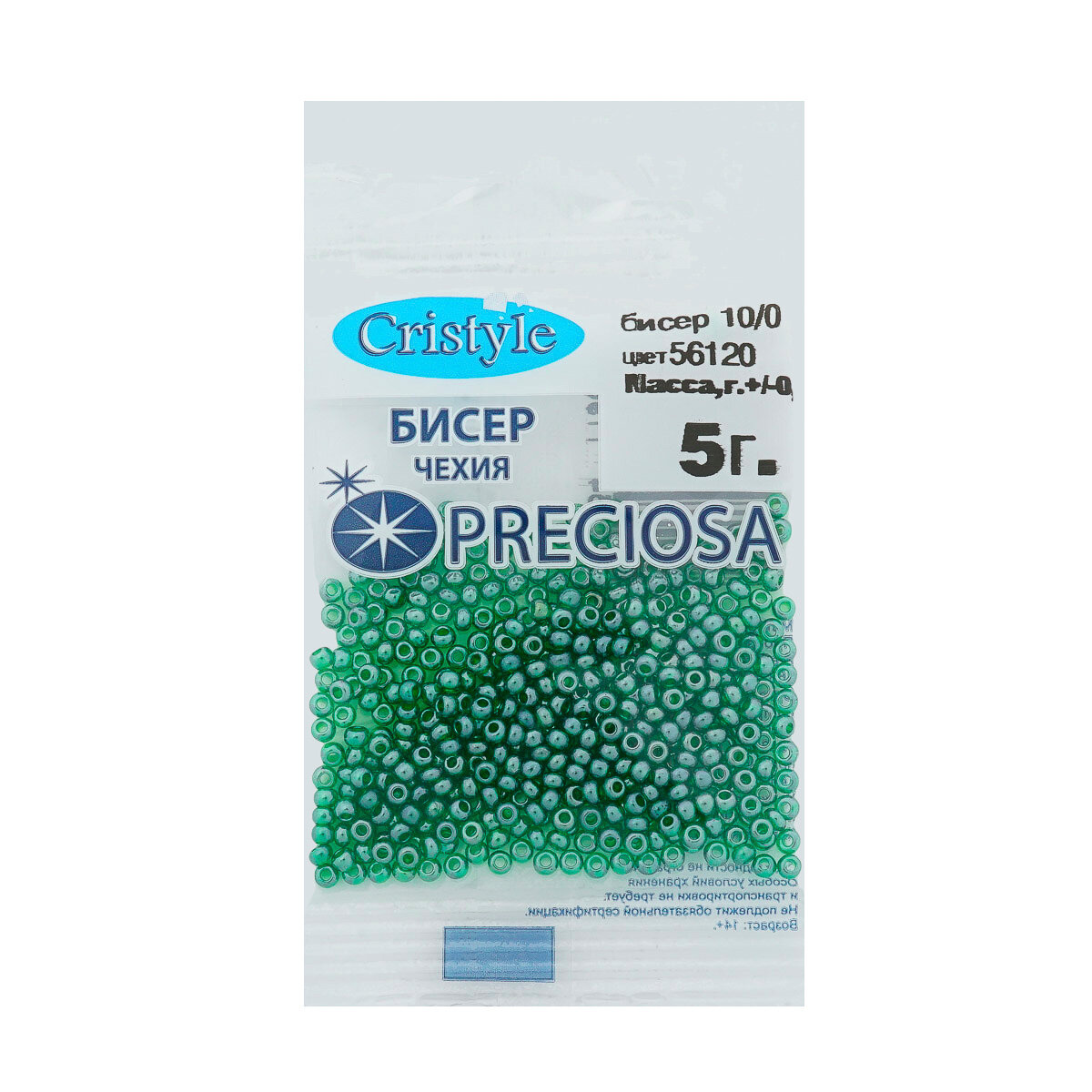 Купить Бисер чешский Preciosa 10/0 (2,3 мм), цвет № 56120, 5г*10 упак