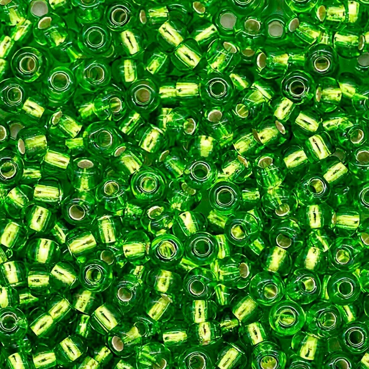 Бисер чешский PRECIOSA рубка 10/0 57120 зеленый, серебряная линия внутри, 50г