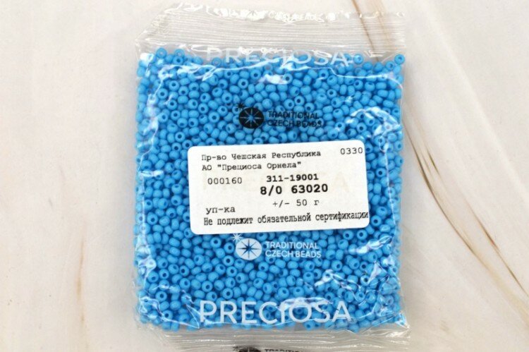 СохранитьБисер чешский PRECIOSA круглый 8/0 63020 голубой непрозрачный, 50г интересное: