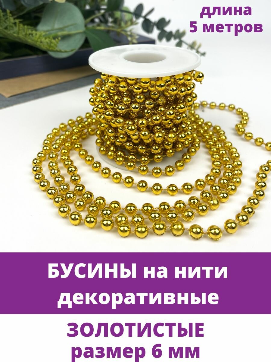 Бусины на нити, цвет Золотистый, диаметр 6 мм, длина 5 м. интересное: