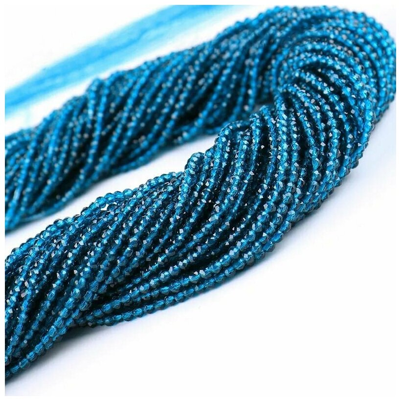 KamenOpt / Шпинель бусины граненые 2 мм, на нитке 38 см, цвет: Голубой, для рукоделия