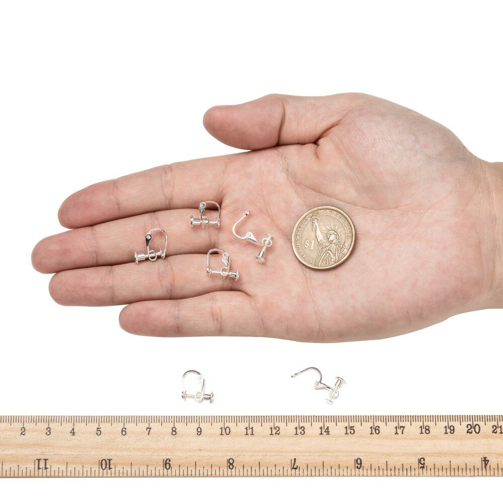 Купить Основы под клипсы 13х3мм, лаконичные, с платформой, закручивающиеся, базовый материал - латунь, серебристого цвета, пара