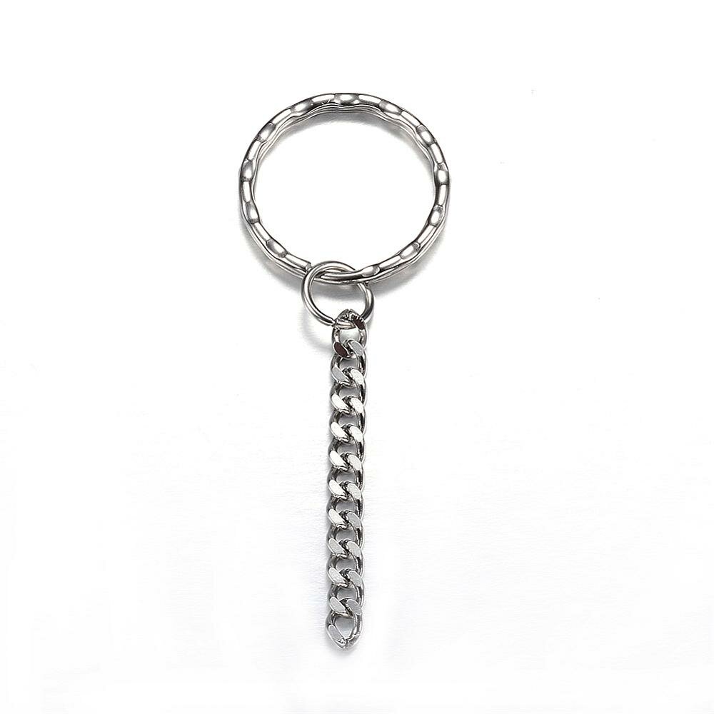 Основа под брелок, 47х25мм, кольцо двойное, с цепочкой, базовый материал - железо, серебристого цвета, около 21 грамм