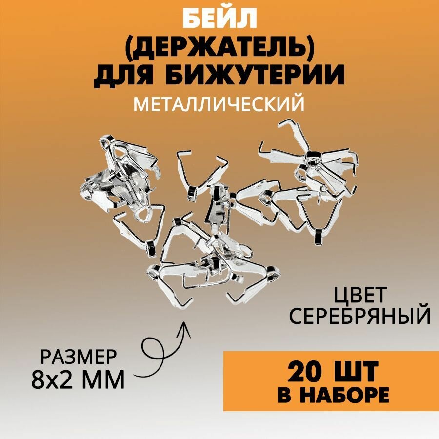 Бейл-скоба / Держатель для кулона / Фурнитура для бижутерии, серебро, размер 8х2 мм, 20 штук интересное: