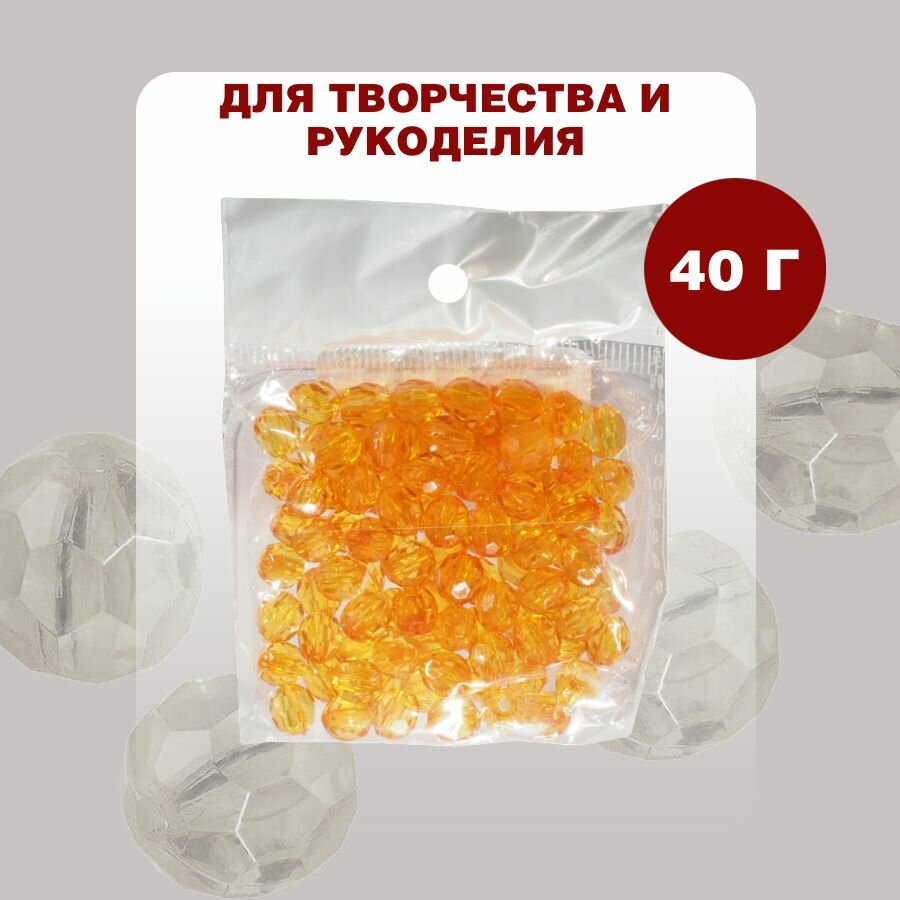 Бусины прозрачные граненые "Шар" 8 мм, оранжевые AD 22, 40 гр./175 шт.