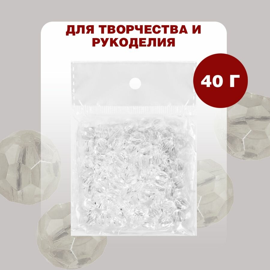 Купить Бусины прозрачные граненые "Шар" 8 мм, прозрачные AD 17, 40 гр./175 шт.