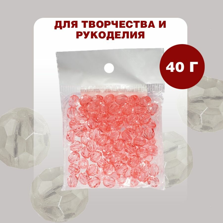Бусины прозрачные граненые "Шар" 8 мм, розовые AD 40, 40 гр./175 шт.