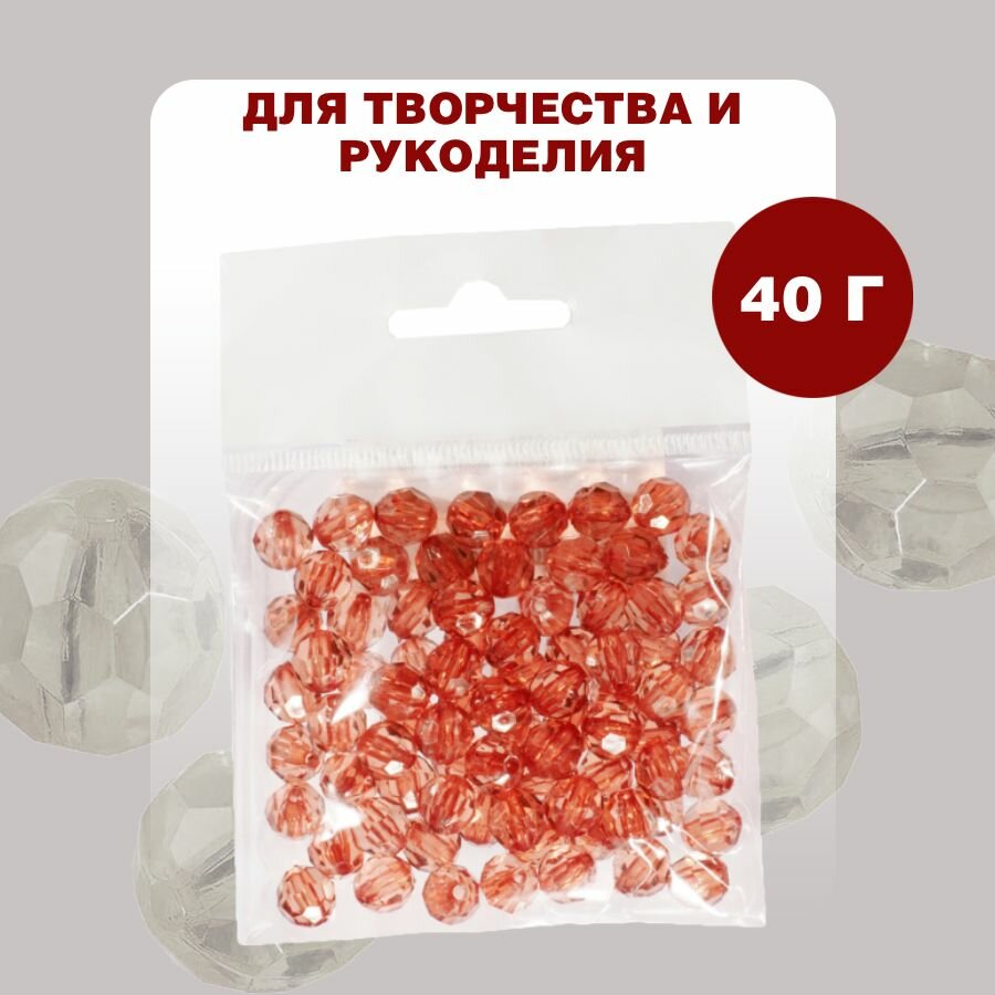Бусины прозрачные граненые "Шар" 8 мм, красные AD 04, 40 гр./175 шт.