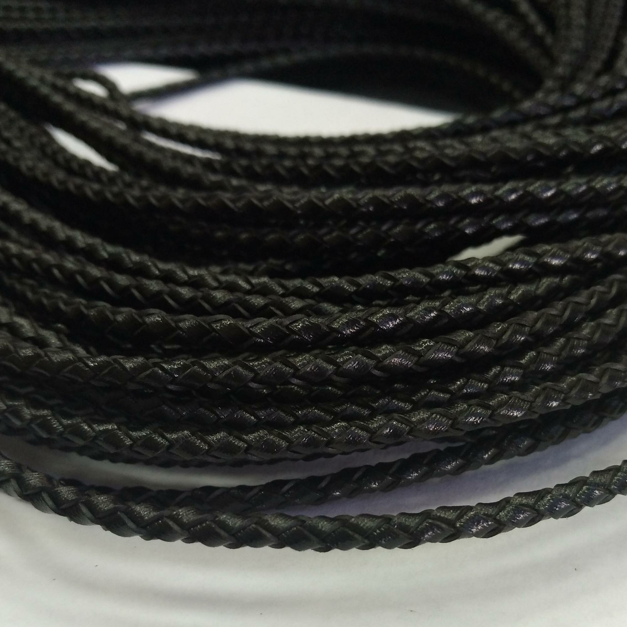 Купить Шнур кожаный, около 2.5-3мм, плетеный, черный, 1 метр