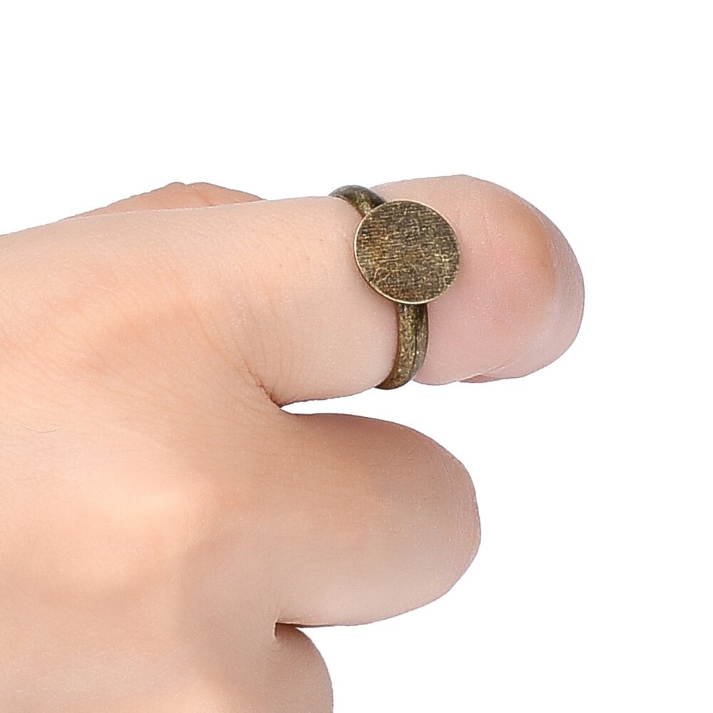 Купить Основа для кольца, регулируемого размера, с платформой 10мм, базовый материал - латунь, античная бронза, 5 шт.