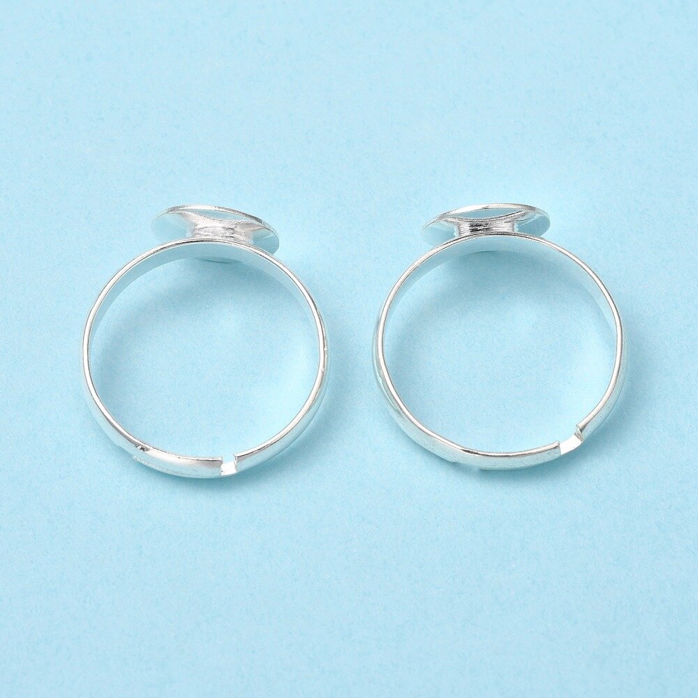 Основа для кольца, регулируемого размера, с платформой 10мм, базовый материал - латунь, серебристого цвета, 5 шт.