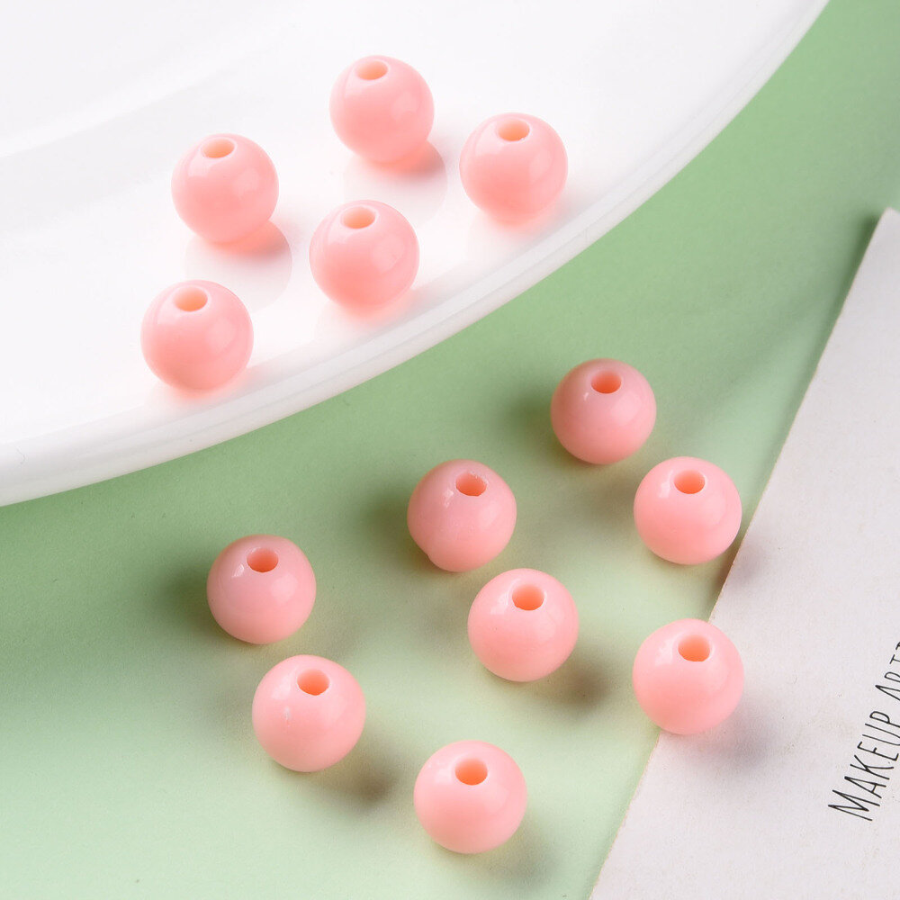 Купить Бусины акриловые, 8мм, круглые, цвет лососево-розовый, 50 грамм