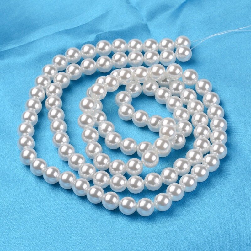 Купить Бусины акриловые, 8мм, круглые, под жемчуг, белые, 25 грамм