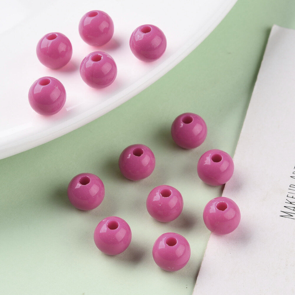 Купить Бусины акриловые, 8мм, круглые, цвет розовая фуксия, 50 грамм