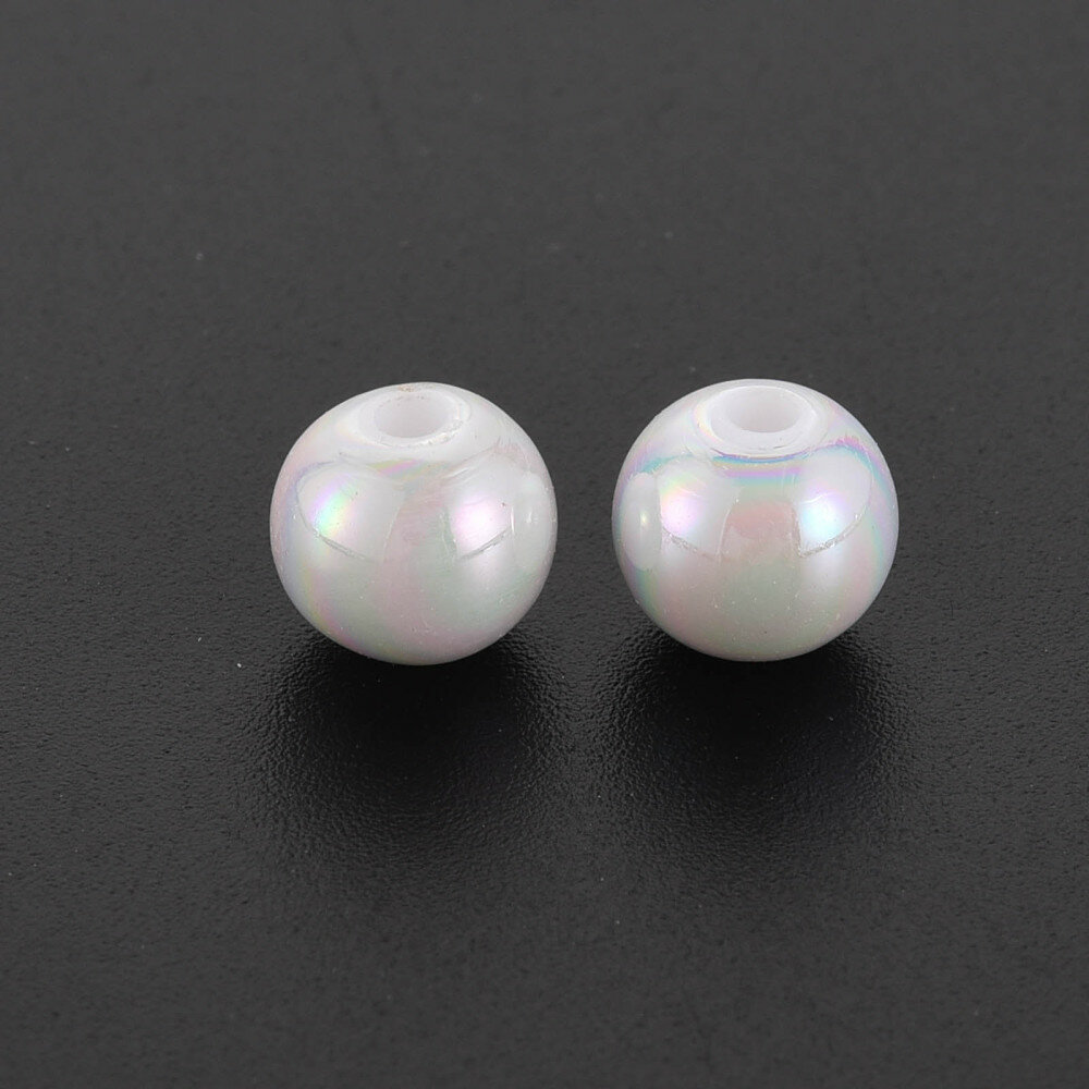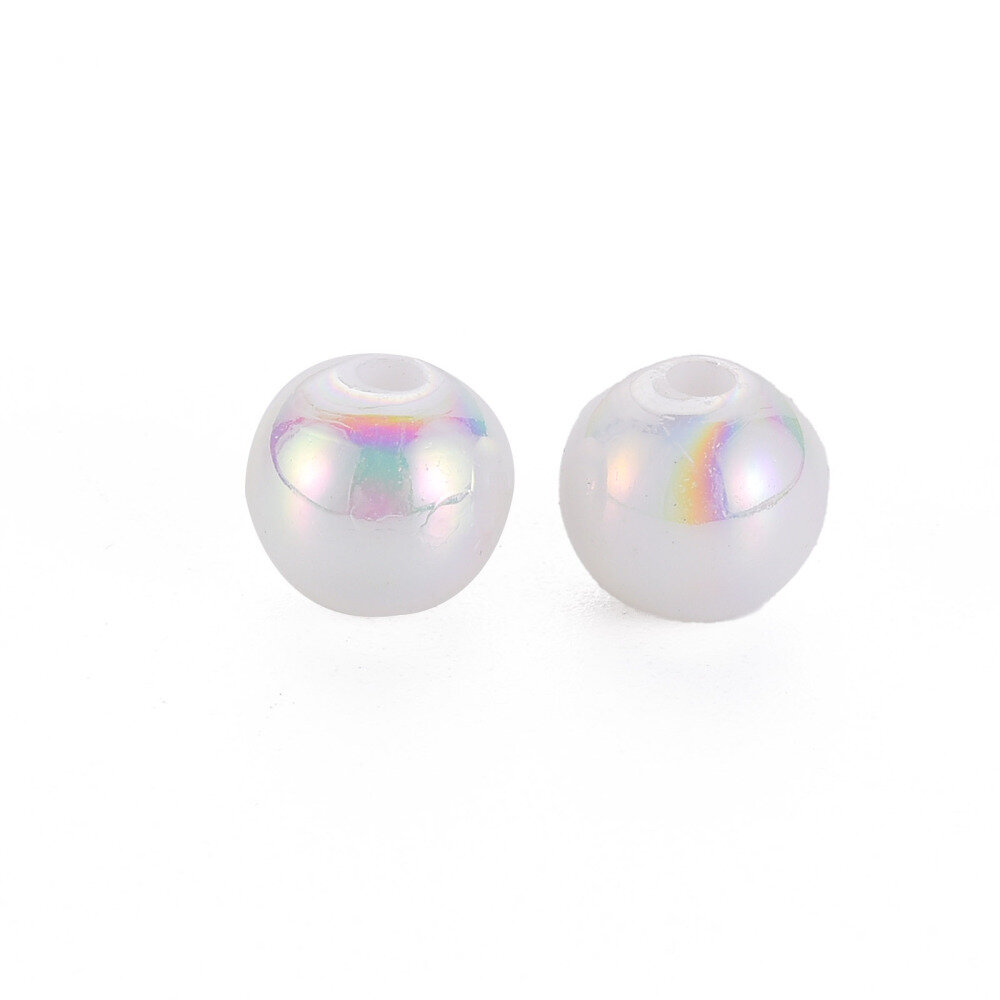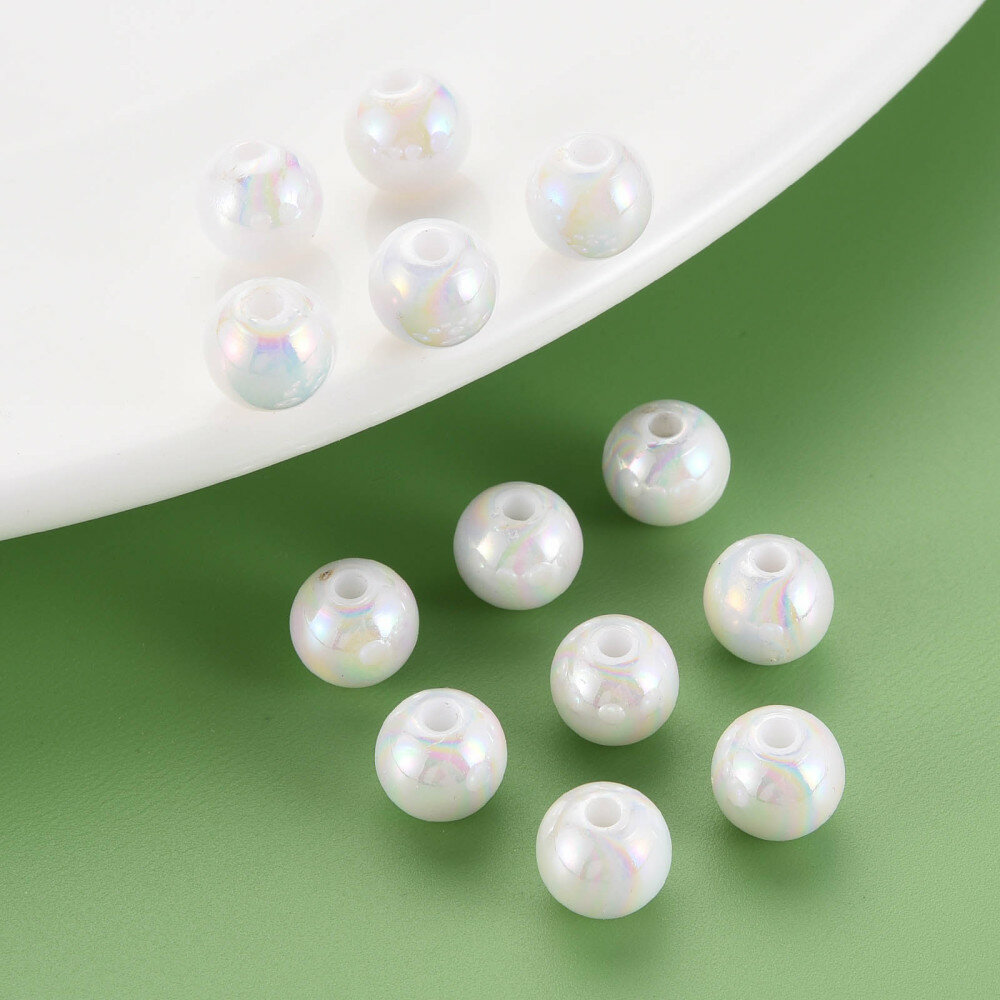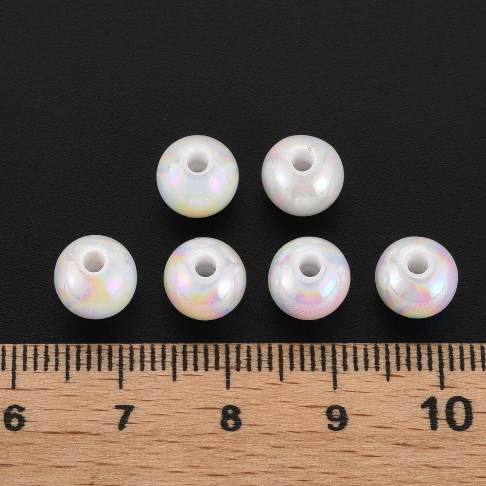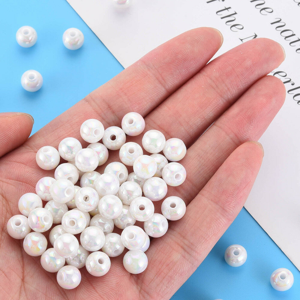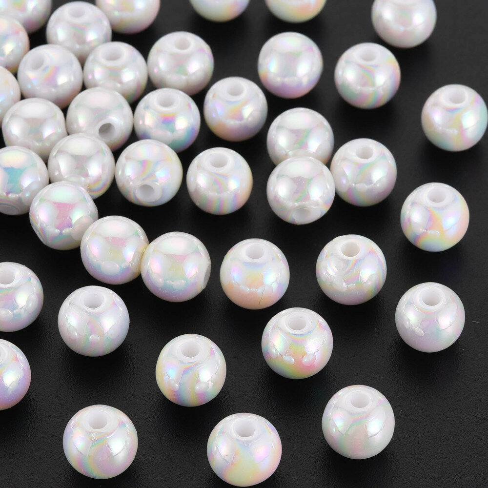 Купить Бусины акриловые, 8мм, круглые, цвет белый с радужно-перламутровым отливом, 50 грамм