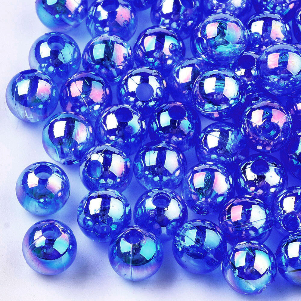 Купить Бусины акриловые, 8мм, круглые, полупрозрачные, цвет синий с радужным отливом, 50 грамм