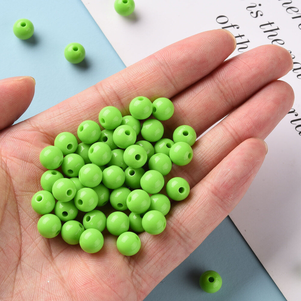 Купить Бусины акриловые, 8мм, круглые, цвет салатовый, 50 грамм