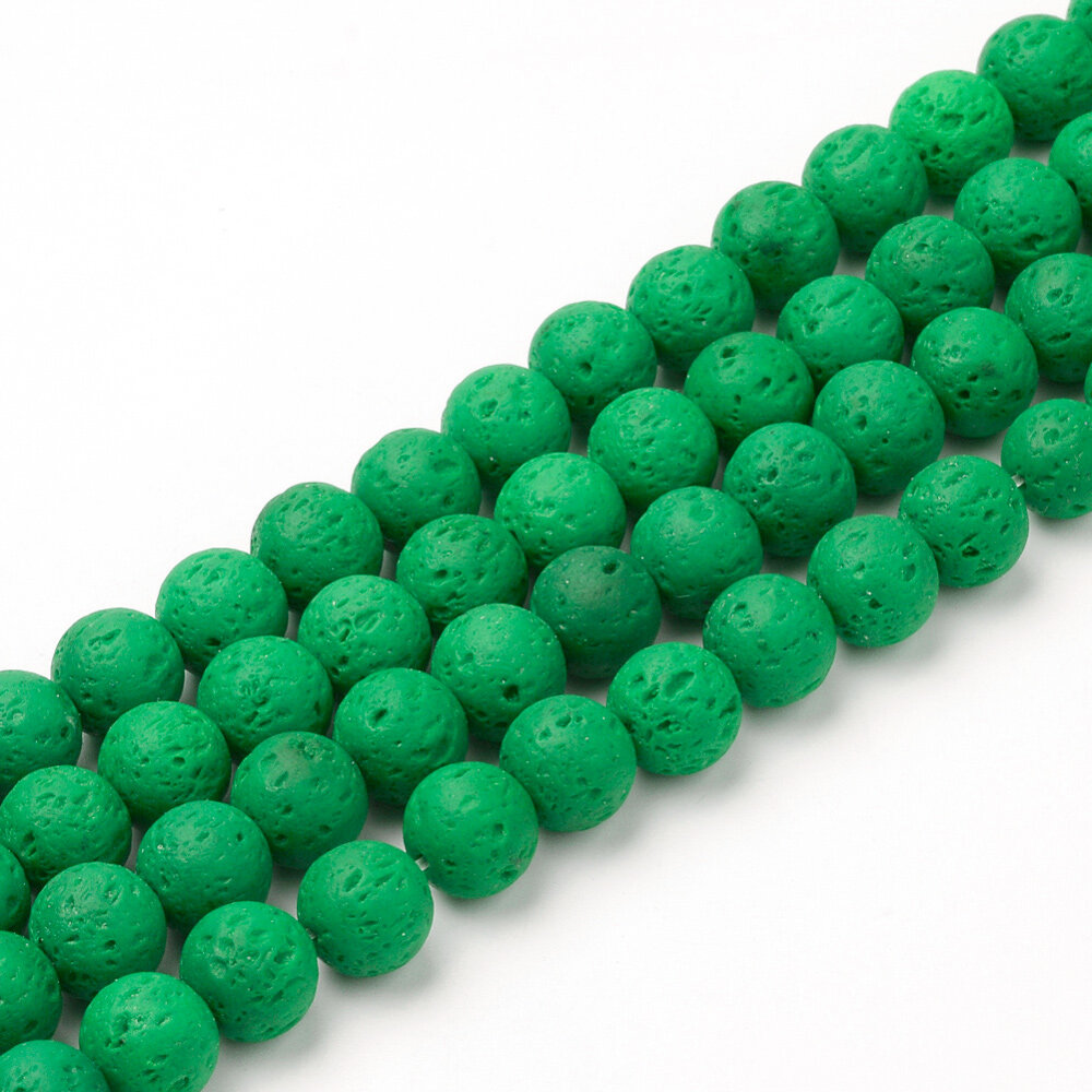 Купить Бусины каменные, вулканическая лава, зелёная, 6мм, 64 шт, низка