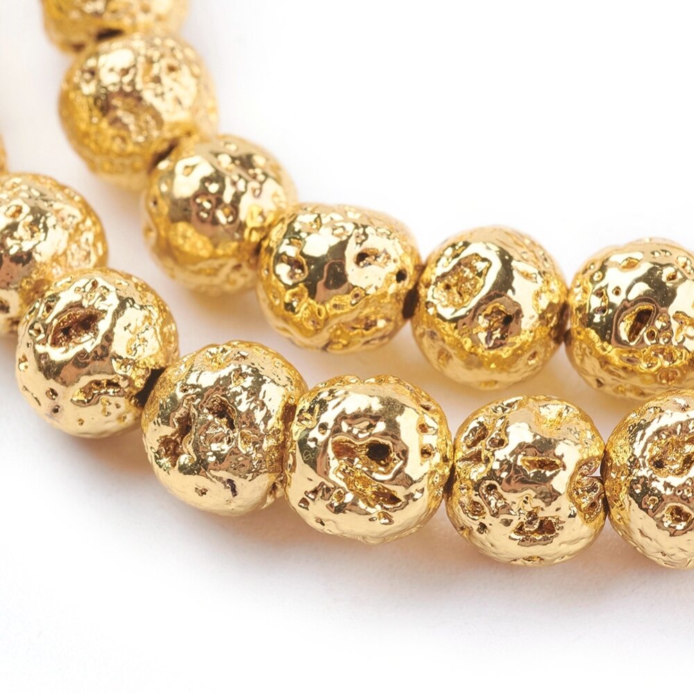 Купить Бусины каменные, вулканическая лава, металлизированная, под золото, 6-7мм, 60 шт, низка
