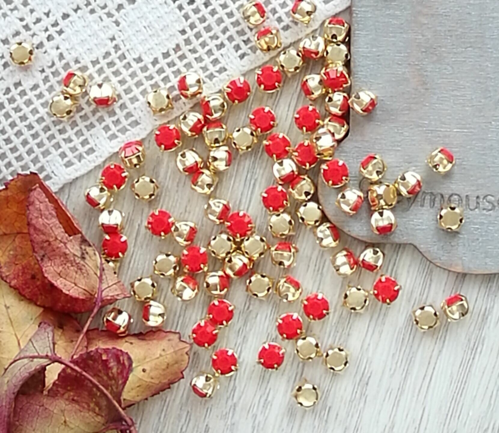 СохранитьКристаллы шатоны пришивные Preciosa Coral ss16 оранжевые (ks013), в оправе под золото. интересное: