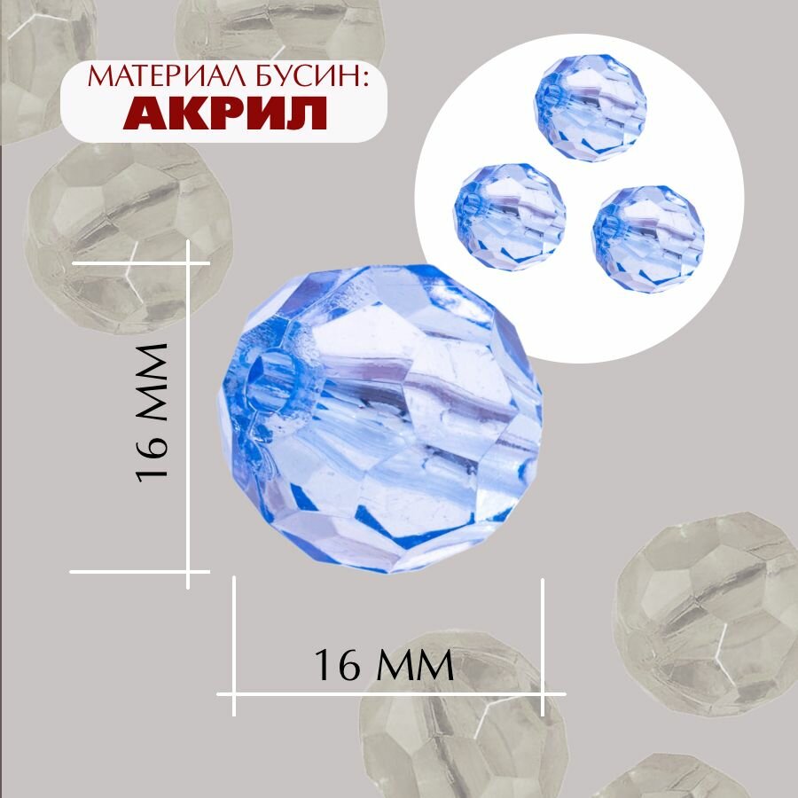 СохранитьБусины прозрачные граненые "Шар" 16 мм, голубой AD 13, 20 шт. (40 гр.) интересное: