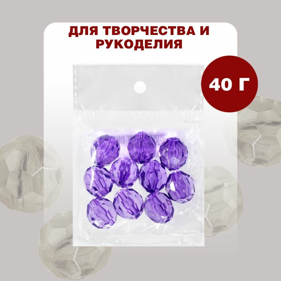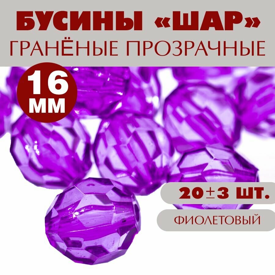 Купить Бусины прозрачные граненые "Шар" 16 мм, фиолетовый AD 07, 20 шт. (40 гр.)