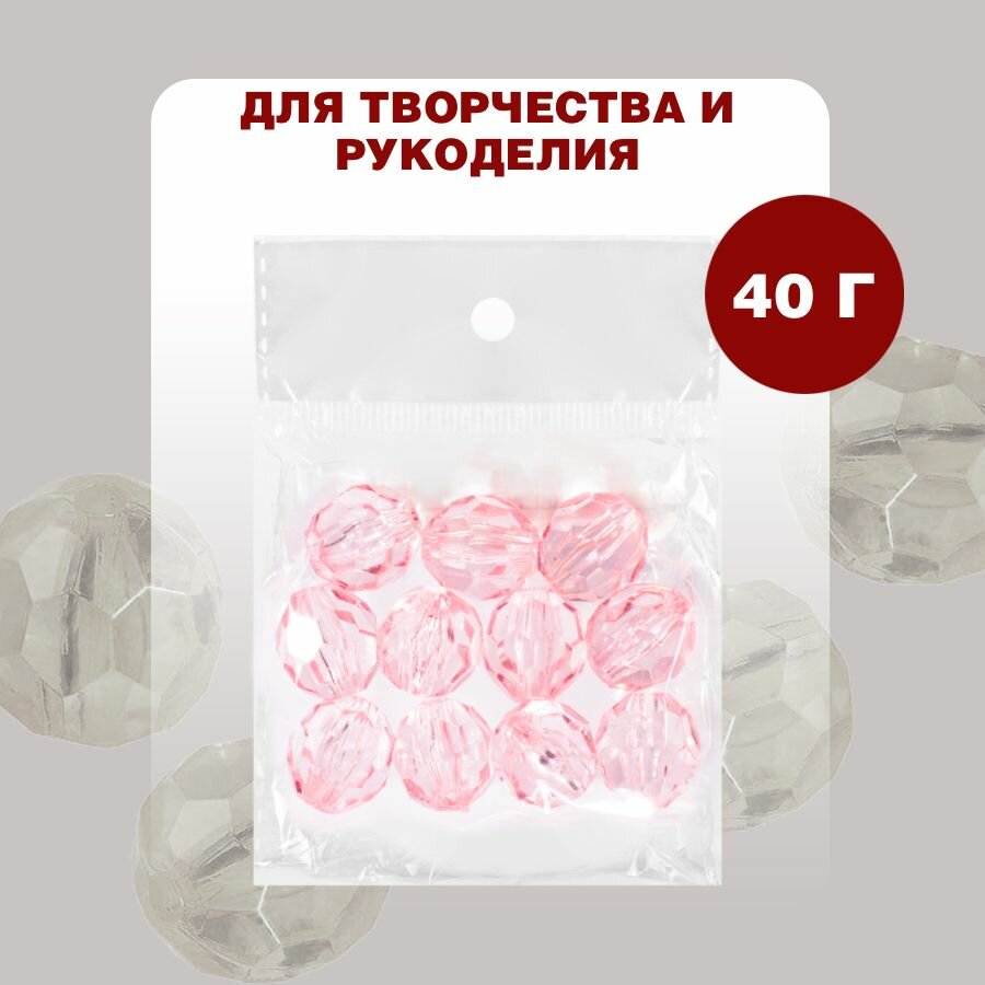 Купить Бусины прозрачные граненые "Шар" 16 мм, розовый AD 42, 20 шт. (40 гр.)