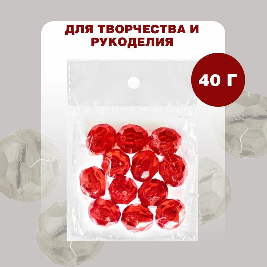 СохранитьБусины прозрачные граненые "Шар" 16 мм, красный AD 04, 20 шт. (40 гр.) интересное: