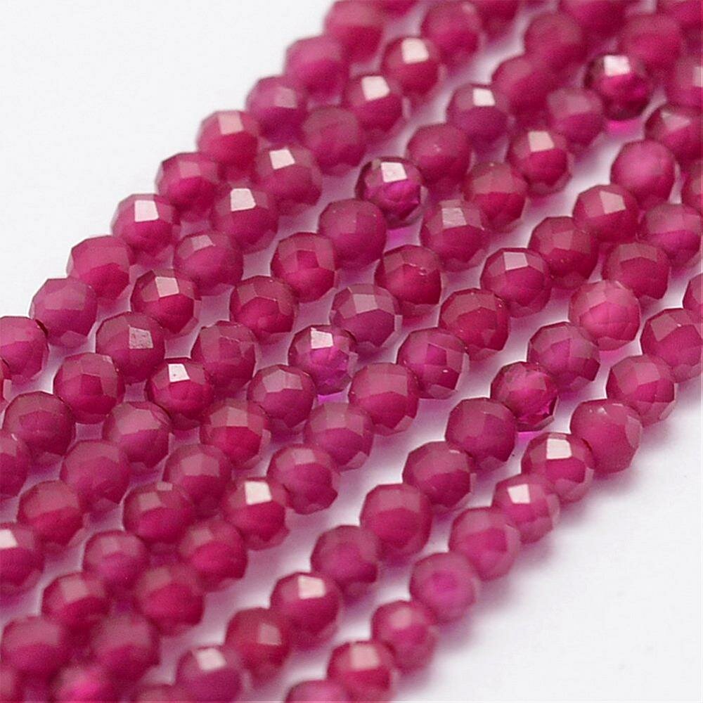 Купить Бусины каменные, рубин (имитация), граненый, 2-2.4мм, 150-190 шт, низка