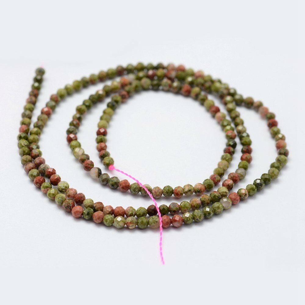 Купить Бусины каменные, унакит, граненый, 2-2.5мм, 190 шт, низка