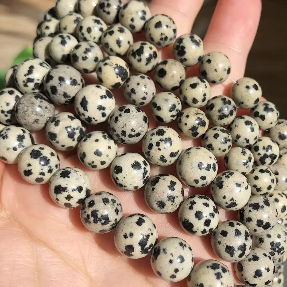 Яшма Далматиновая 10 мм, бусины для рукоделия, на нитке 38 см около 37 шт