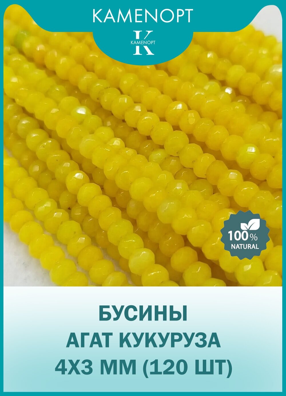 Купить KamenOpt / Агат бусины граненые Кукуруза 4х3 мм, на нитке 38 см, цвет: Желтый