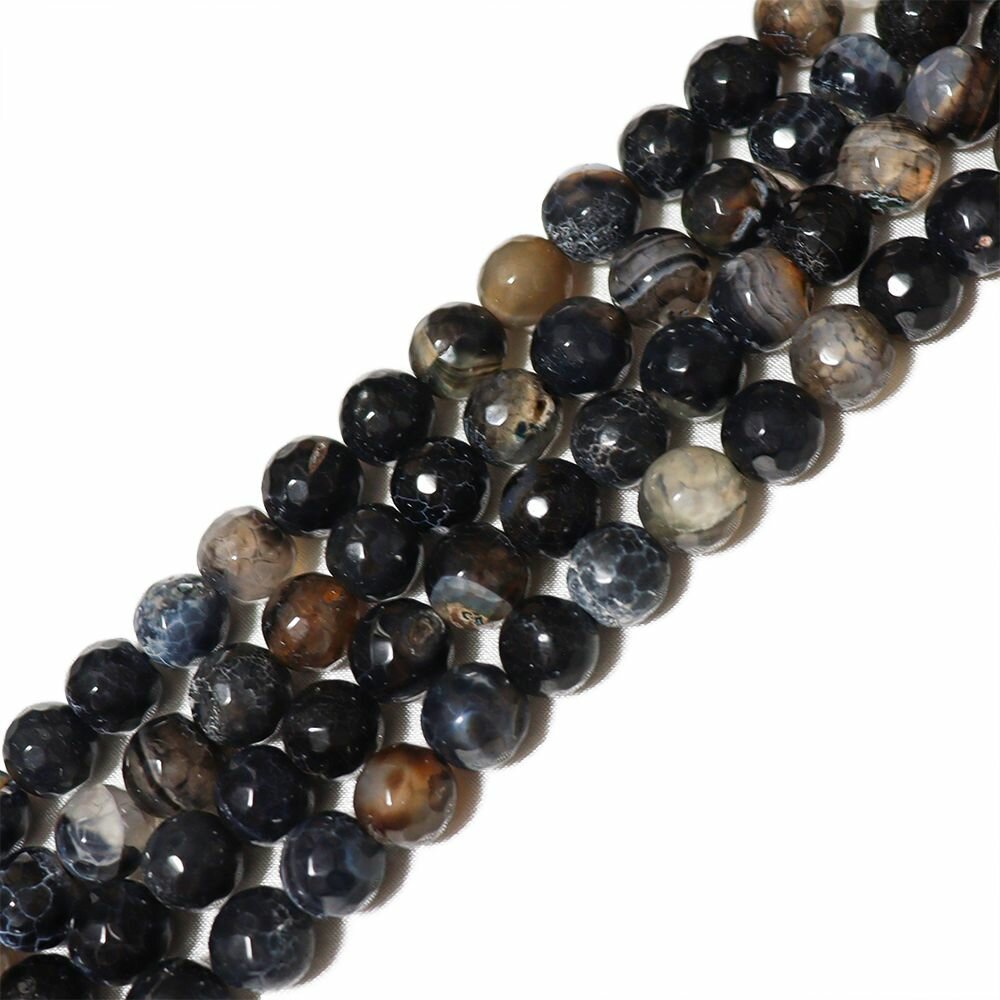 Купить Агат "Вены Дракона" бусины граненые 10 мм, около 37 шт, цвет: Черно-серый