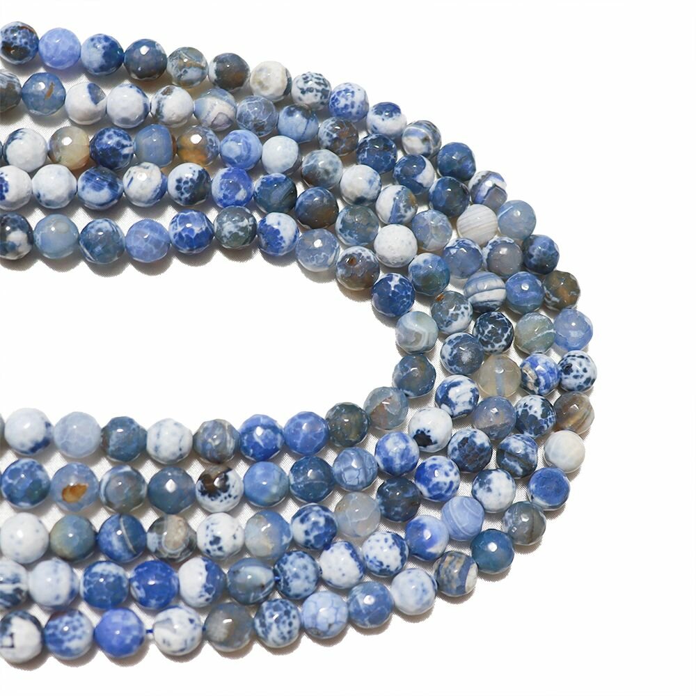 Купить KamenOpt / Агат "Вены Дракона" бусины граненые 8 мм, на нитке 38 см около 45 бусин, цвет: Голубой для рукоделия