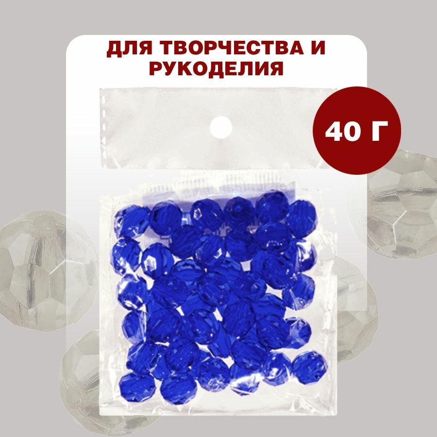 Купить Бусины прозрачные граненые "Шар" 10 мм, синие AD 46, 40гр./80 шт.