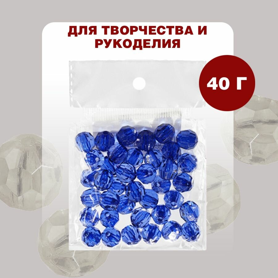 Бусины прозрачные граненые "Шар" 10 мм, синие AD 46, 40гр./80 шт.