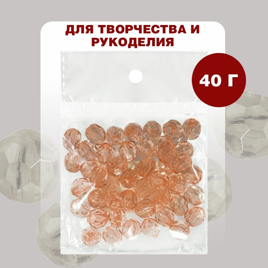 Купить Бусины прозрачные граненые "Шар" 10 мм, бежевые AD 18, 40гр./80 шт.