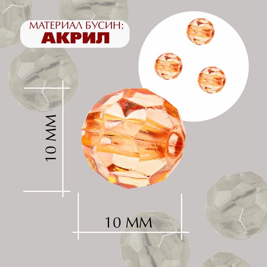 Бусины прозрачные граненые "Шар" 10 мм, оранжевые AD 22, 40гр./80 шт.