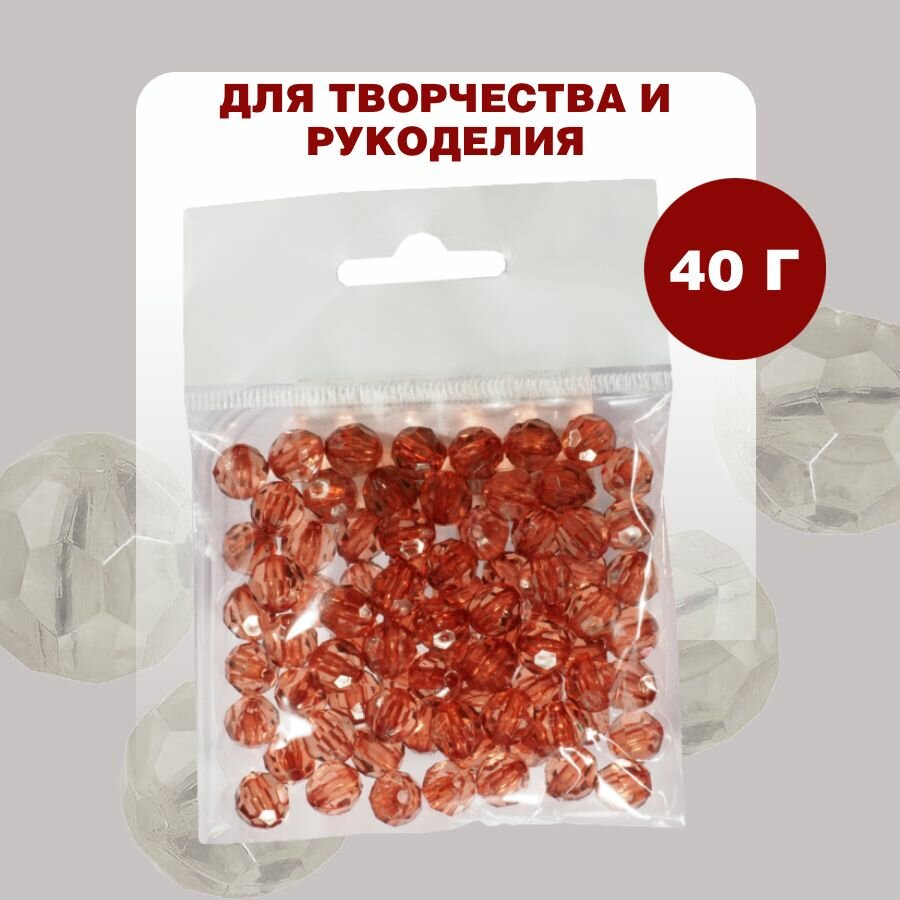 Бусины прозрачные граненые "Шар" 10 мм, красные AD 04, 40гр./80 шт.