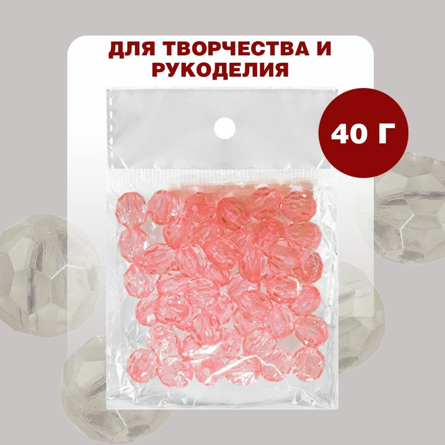 Бусины прозрачные граненые "Шар" 10 мм, розовые AD 02, 40гр./80 шт.