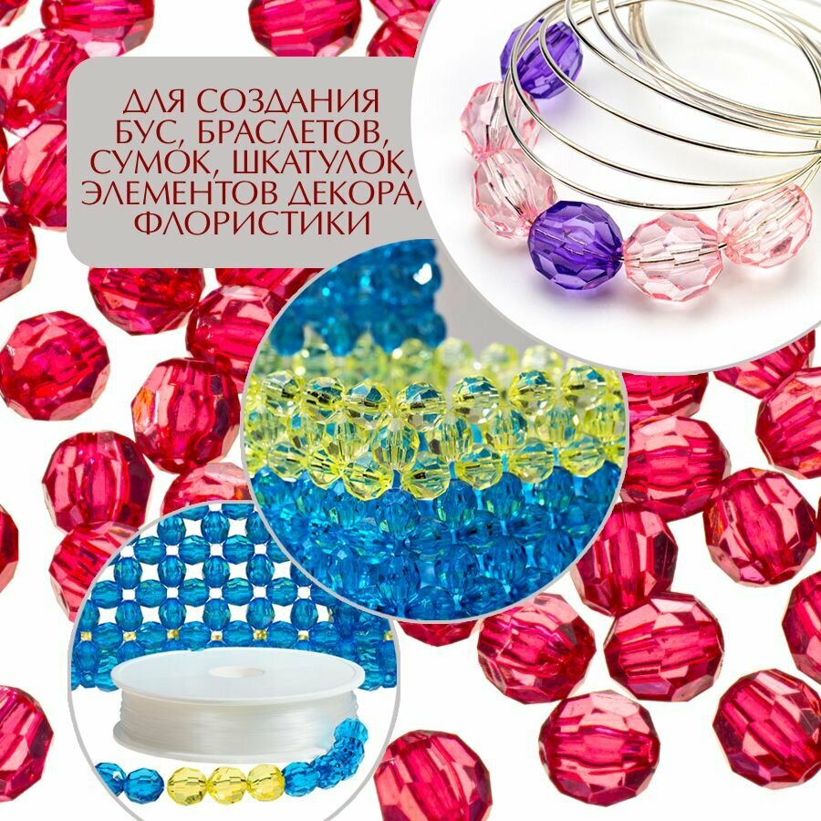 СохранитьБусины прозрачные граненые "Шар" 10 мм, малиновые AD 41, 40гр./80 шт. интересное: