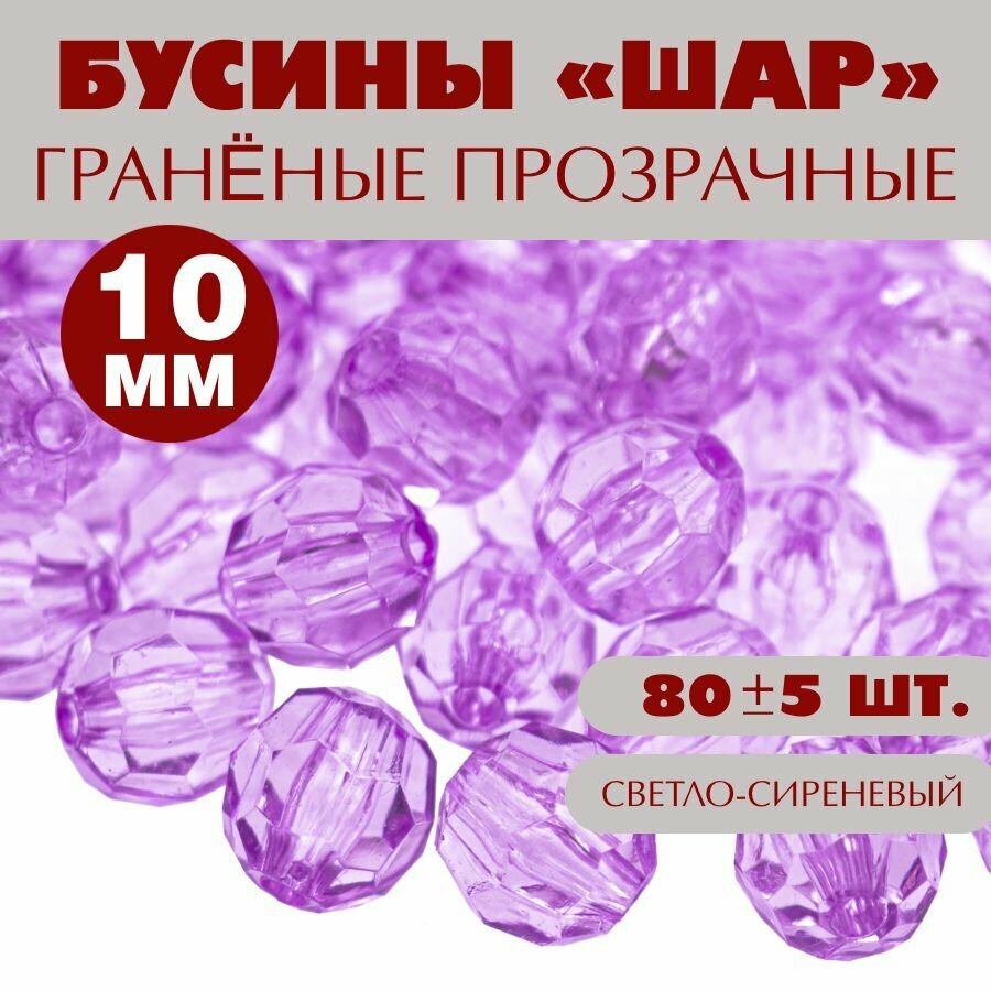Бусины прозрачные граненые "Шар" 10 мм, сиреневые AD 31, 40гр./80 шт.