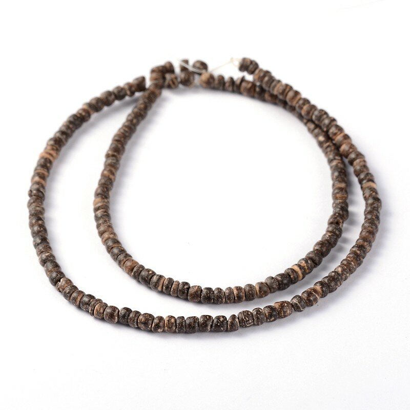 Купить Бусина деревянная, 3.5-4х1.5-3.5мм, рондель, кокосовый орех, темно-коричневый, 140 шт, низка