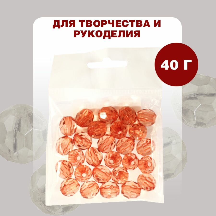 Бусины прозрачные граненые "Шар" 12 мм, оранжевый AD 22, 40гр./80 шт.