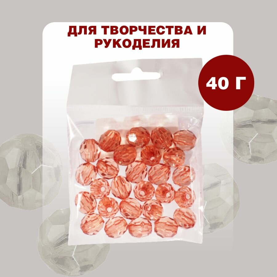 Бусины прозрачные граненые "Шар" 12 мм, розовый AD 42, 40гр./50 шт.