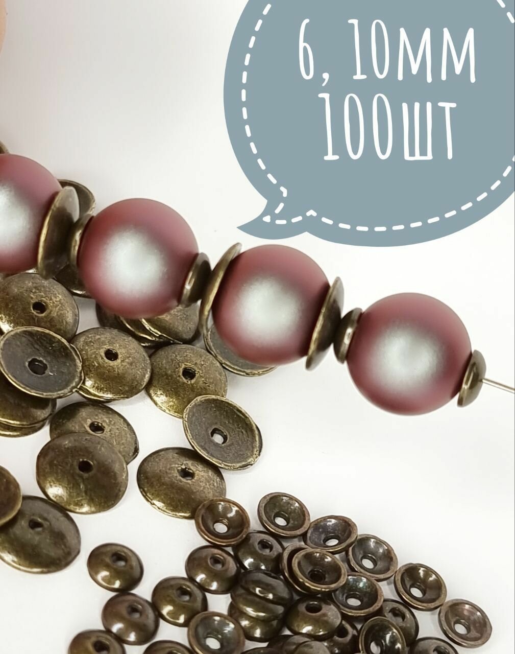 Шапочки для бусин 6 и 10мм. 100шт. Цвет Бронза. интересное: